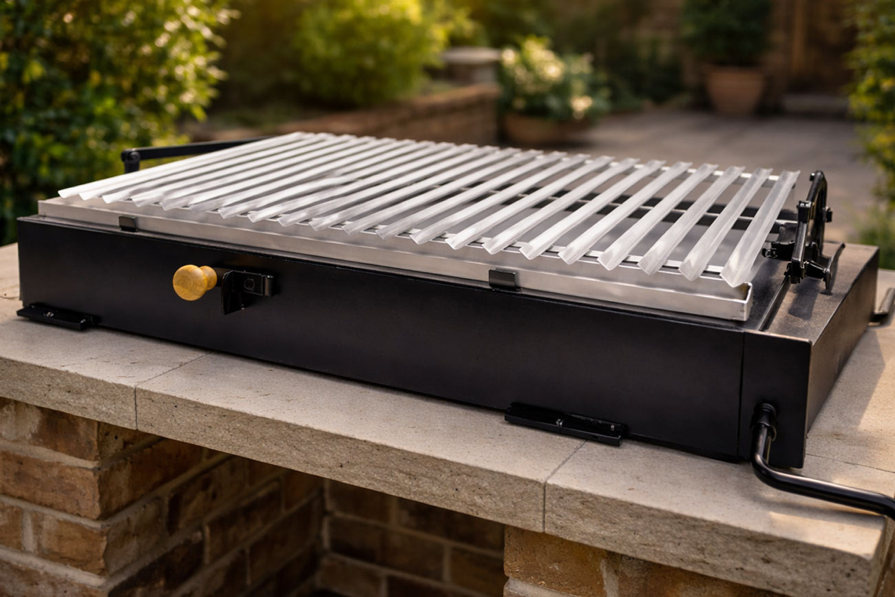 Una parrilla a carbón con manilla frontal fabricada para durar. Materiales de alta calidad y un diseño óptimo para preparaciones de alto nivel.