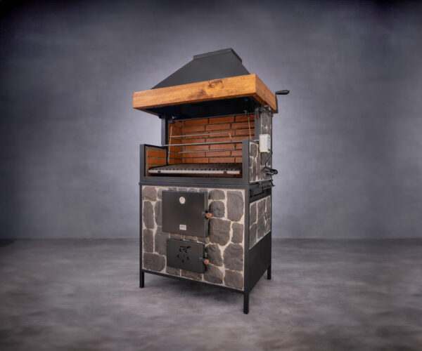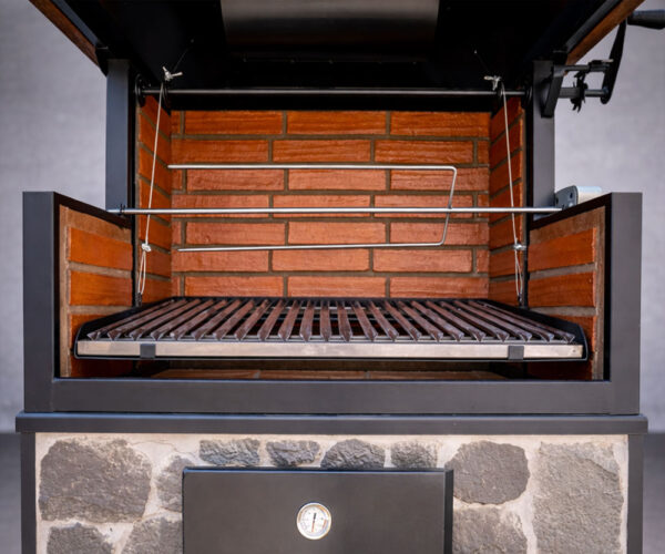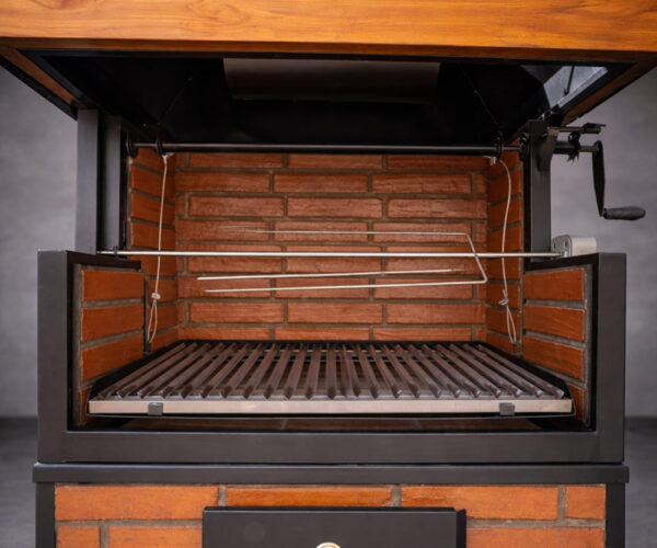 Motor spiedo para 15 kilos de carne, tridente inox, parrilla inox , y horno con 2 bandejas.
